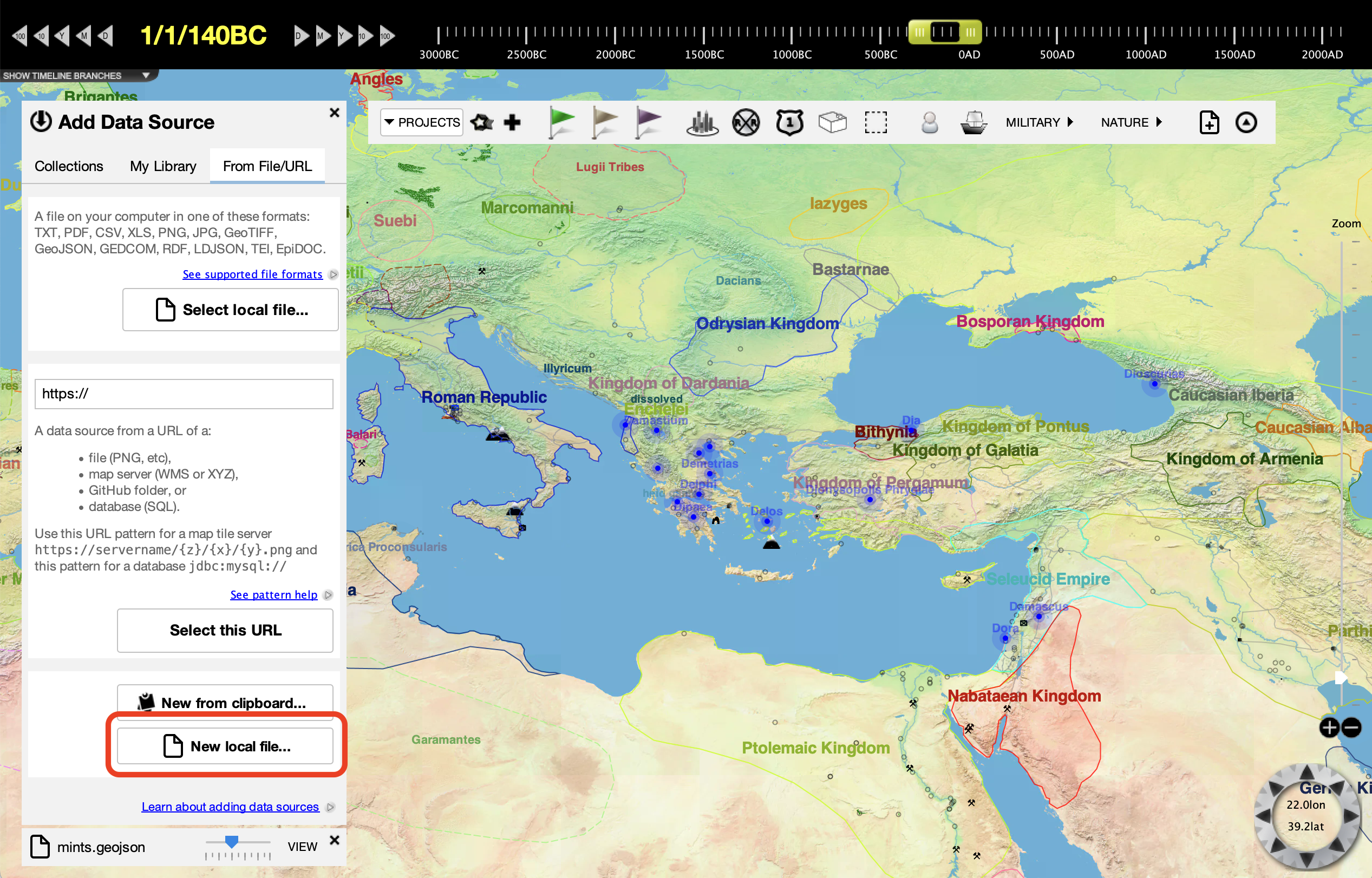 Then, chose "select local file" and the mints.geojson file you downloaded.