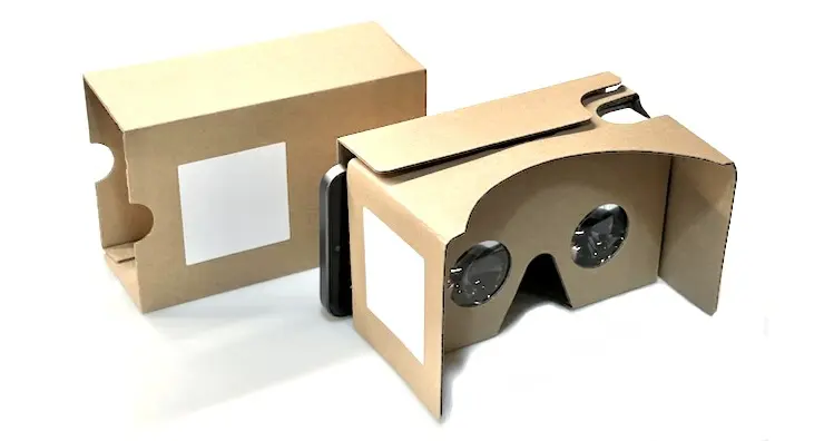 The phone then splits its view into a stereo view and you slide the phone into the cardboard viewer.