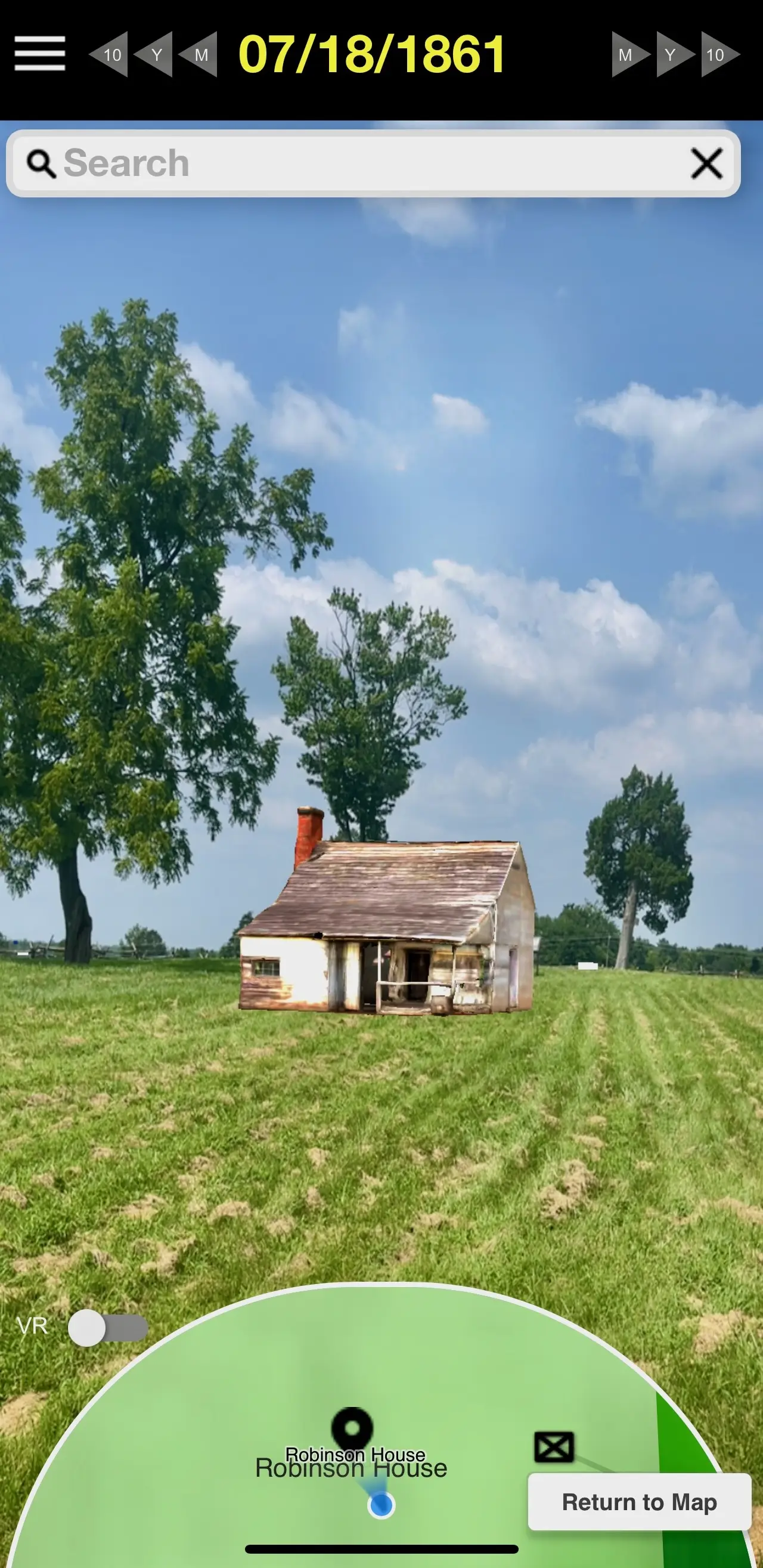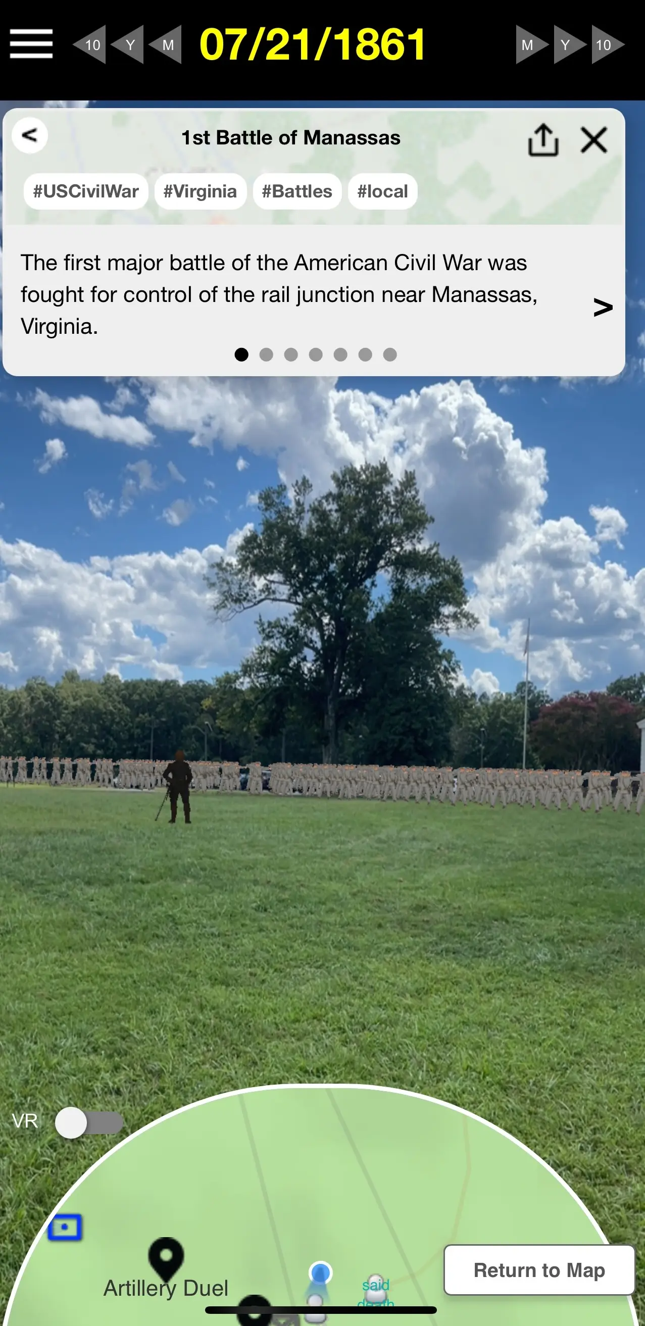 Our prototype has been used in Northern Virginia to bring the history of both battlefield and historic sites to life. If you can not visit these sites yourself, the following images show examples of what the experience is like on visitor's mobile devices.